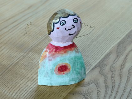 Ručně vyřezávaná figurka zpívajícího andělíčka.