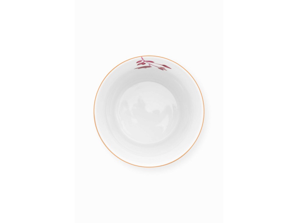 Hrnek bez ucha z holandského tenkostěnného porcelánu, s bílým dlaždicovým vzorem na růžovém podkladu a zlatými detaily přináší na váš stůl klasiku a eleganci. Uvnitř najdete malé překvapení v podobě kytičky.