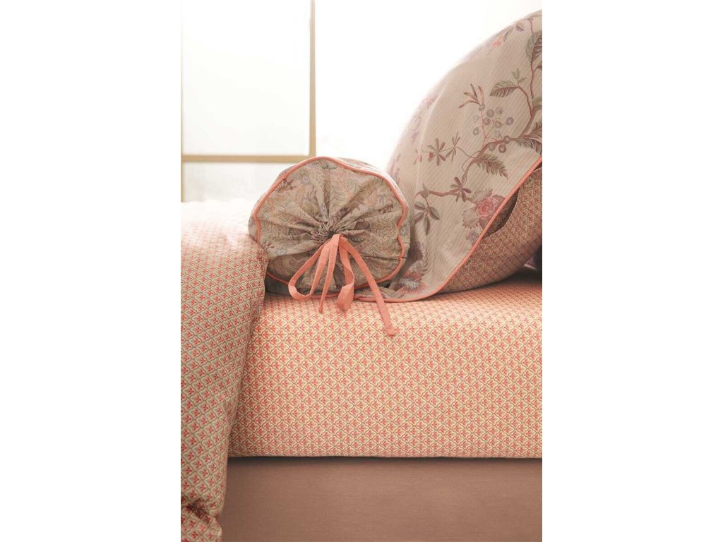 Bavlněný perkál ani praním neztrácí své vlastnosti, a tak se z jeho lososového dlaždicového vzoru, posetého malými kytičkami můžete těšit opravdu dlouho.