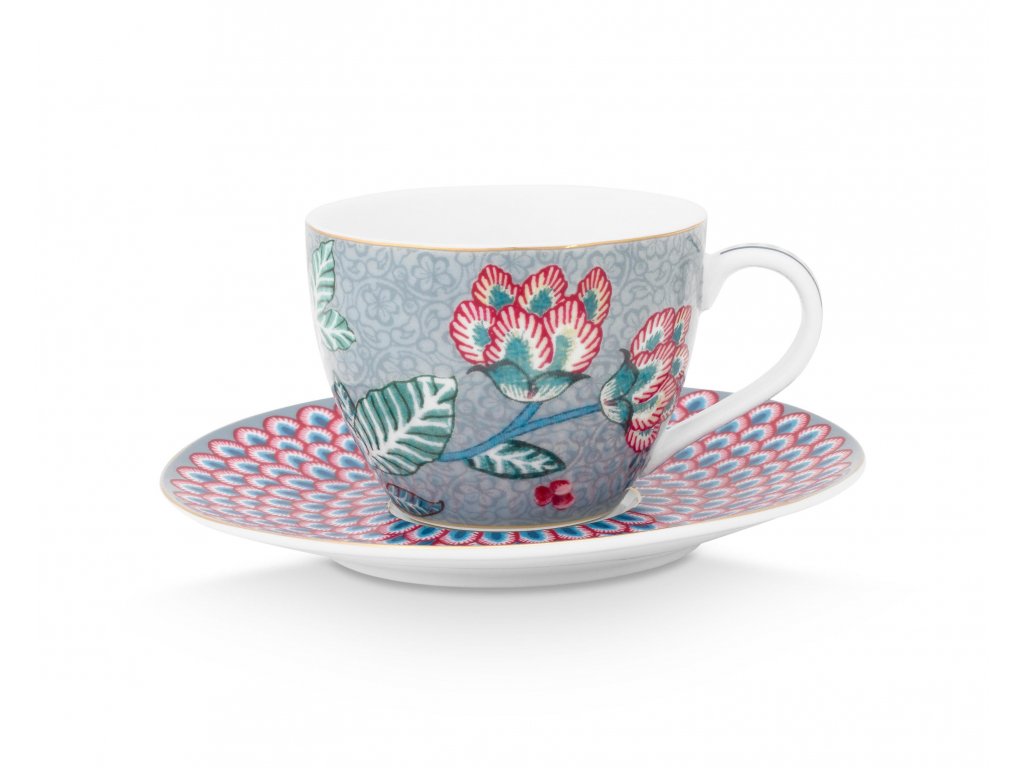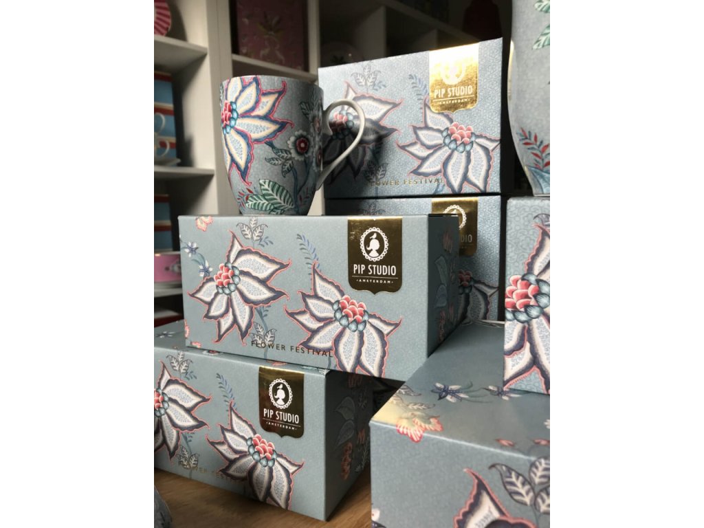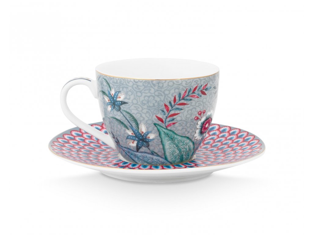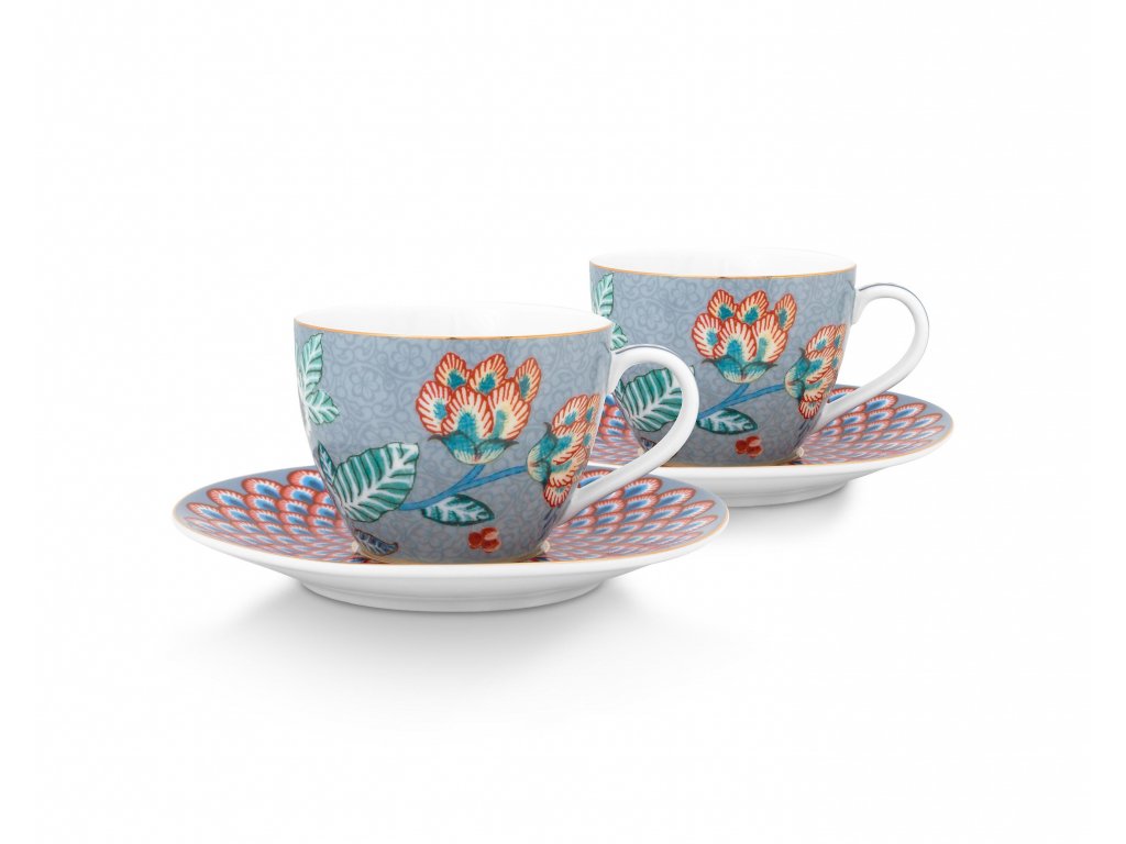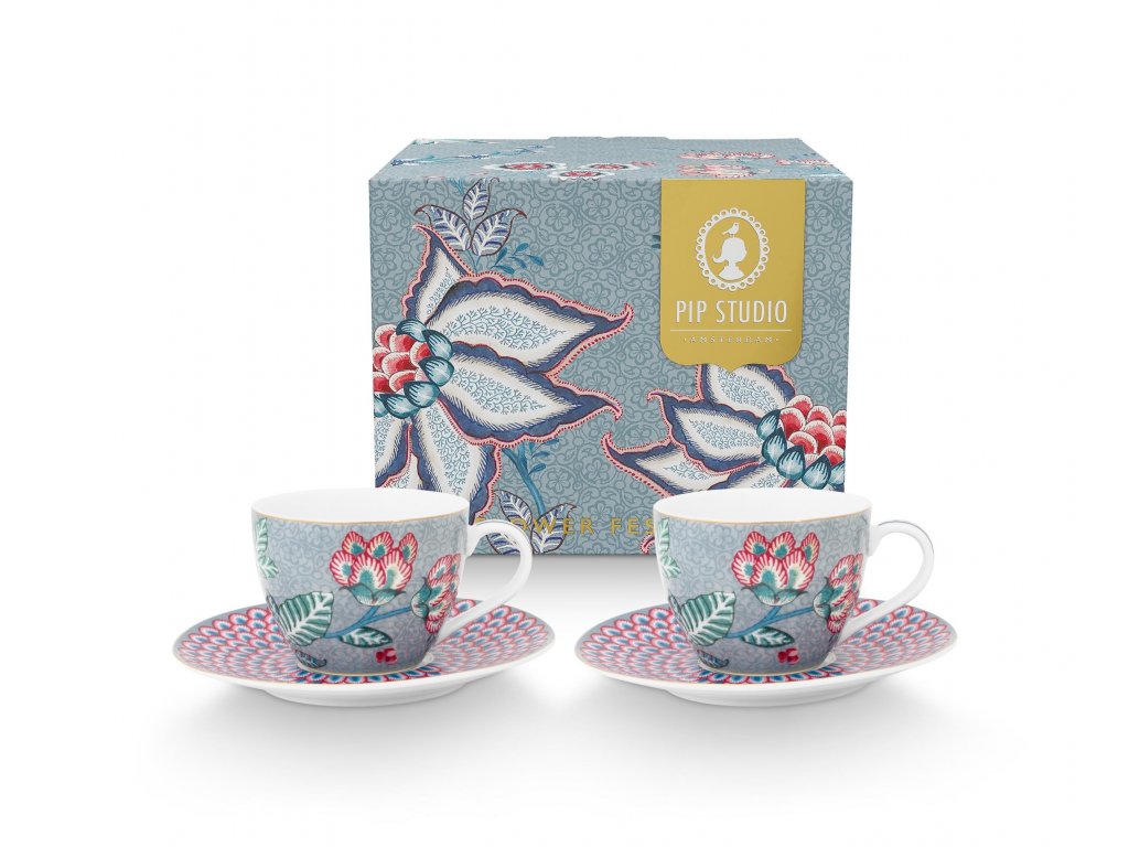 Pip Studio set 2 šálků s podšálky Flower Festival modrý, 120 ml