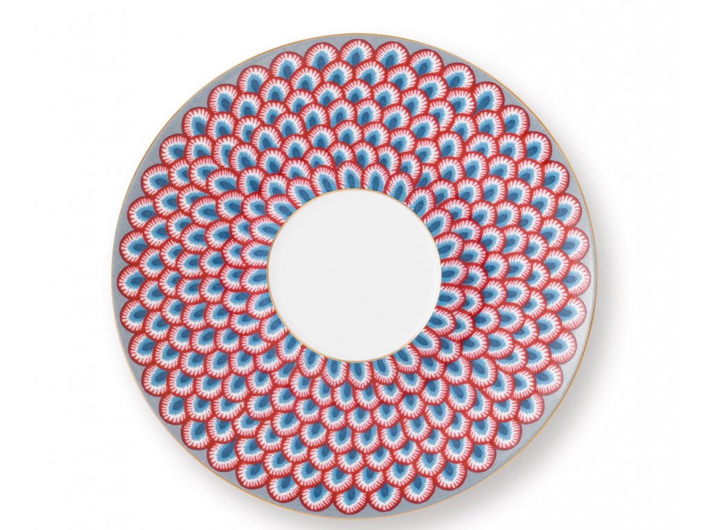 Kolekce porcelánu Flower Festival v tlumené modré barvě s dekorem rozmanitých exotických rostlin, plných fantaskních květů je doplněna o decentní vzor malých mušliček – hřebenatek.